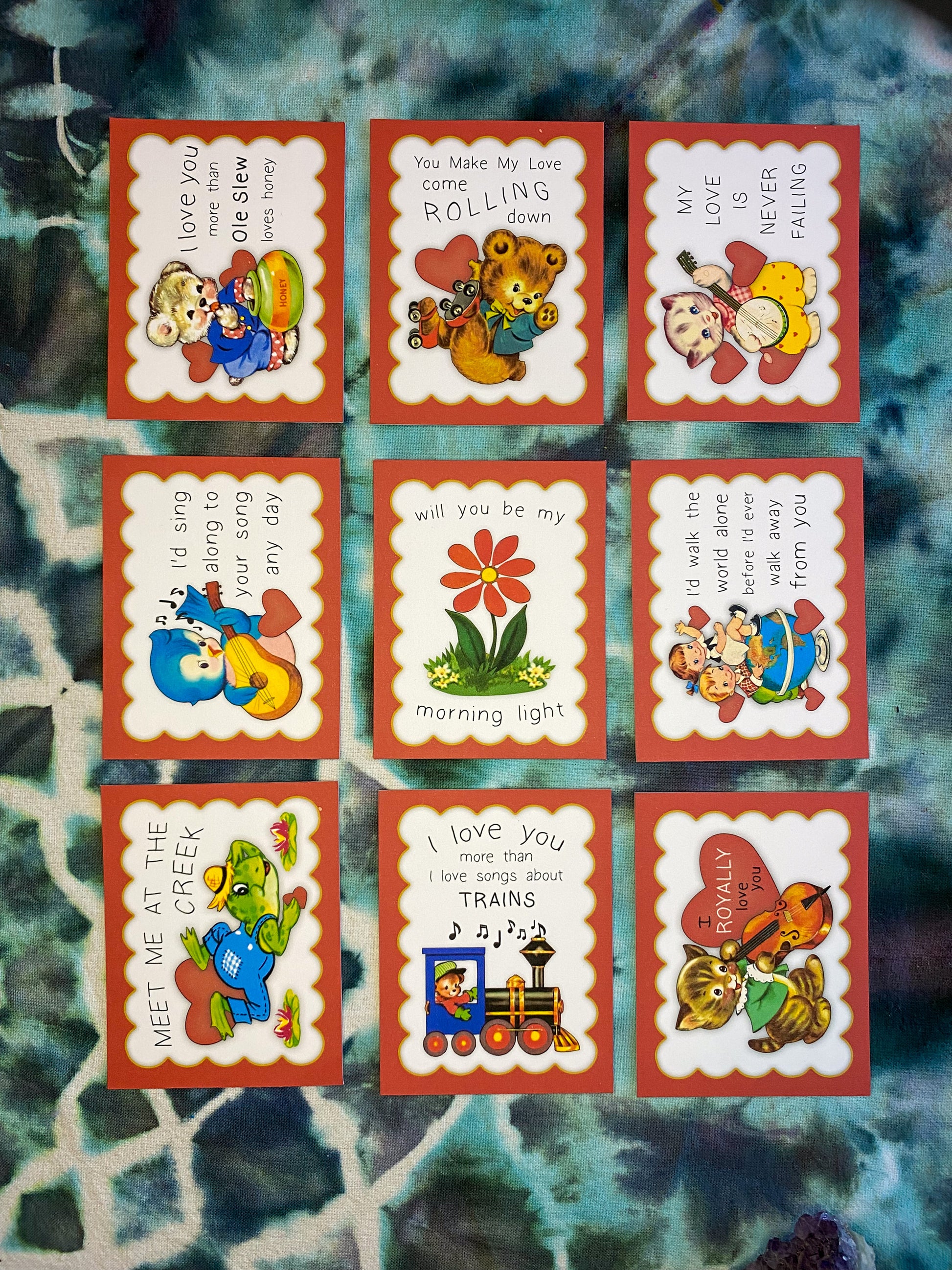 You will receive one of each of the 9 different Valentines shown in the pictures
