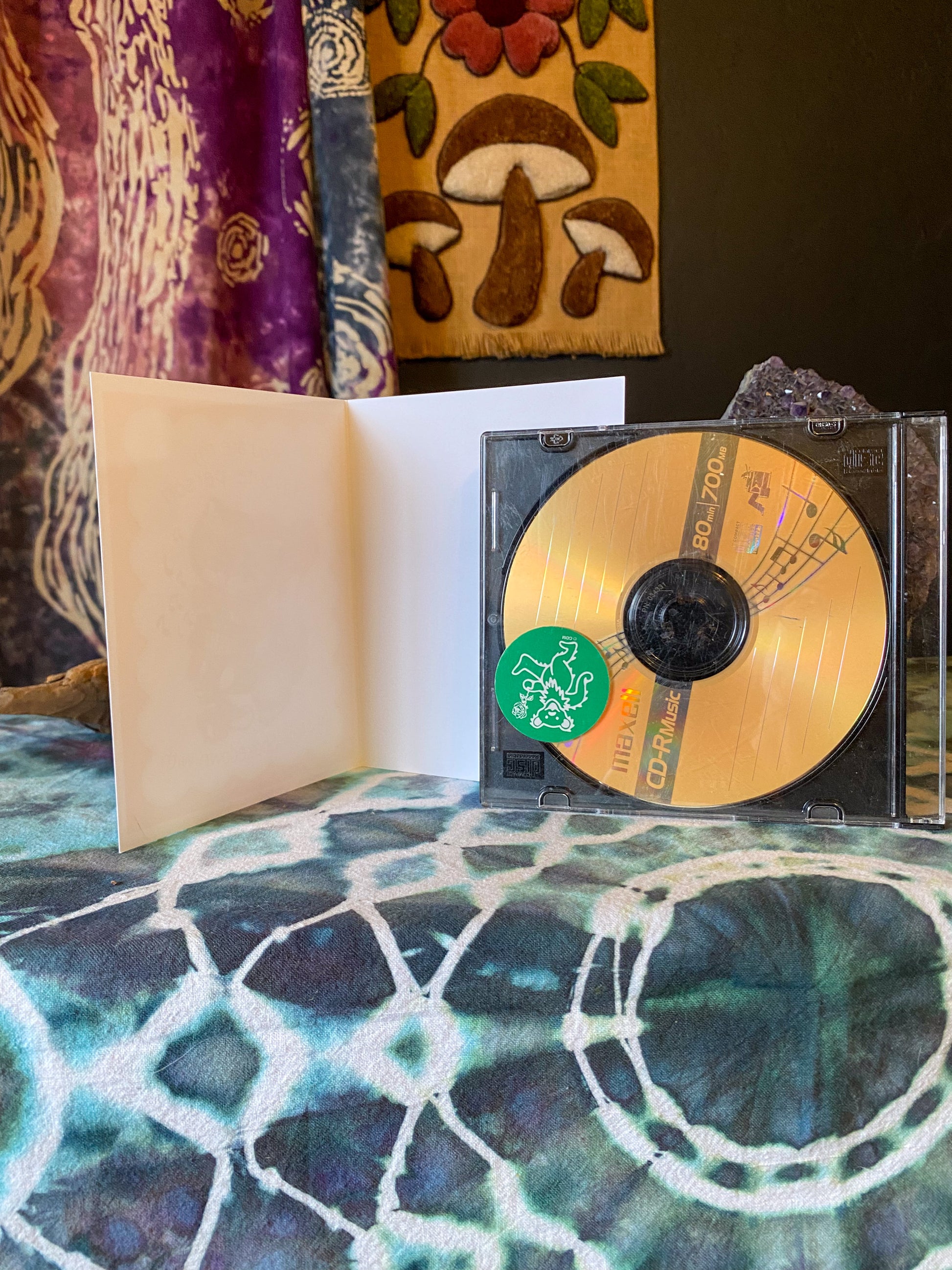Card is 4 1/4 inches by 5 1/2 inches (folded) -CD for scale-