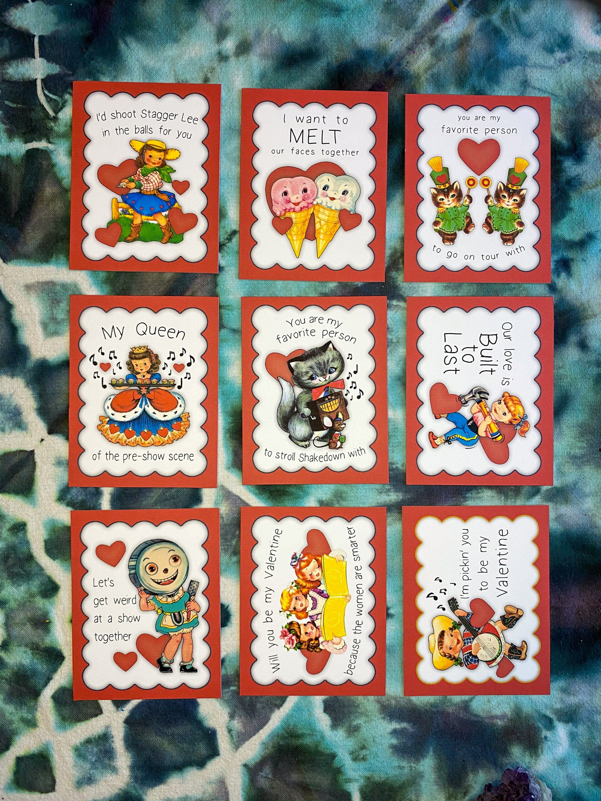 You will receive one of each of the 9 different Valentines shown in the pictures